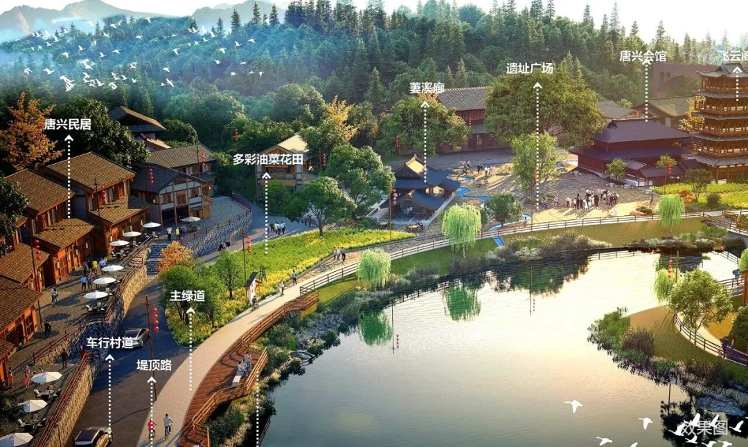 “唐兴印记·都市田园”综合体项目深度融合历史文脉与生态资源,旨在推动传统农业向文旅融合转型,为文化遗产活化利用及“特色产业强县、民生幸福优城”建设注入新动能。项目同步推进农田景观、滨河绿道、河道治理及各类桥梁、观景平台等设施建设,未来将勾勒出“一河、两带、多脉、多点”的都市田园画卷。