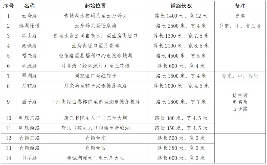 附件:县城区、赤城湖等区域部分道路、公园景点命名方案