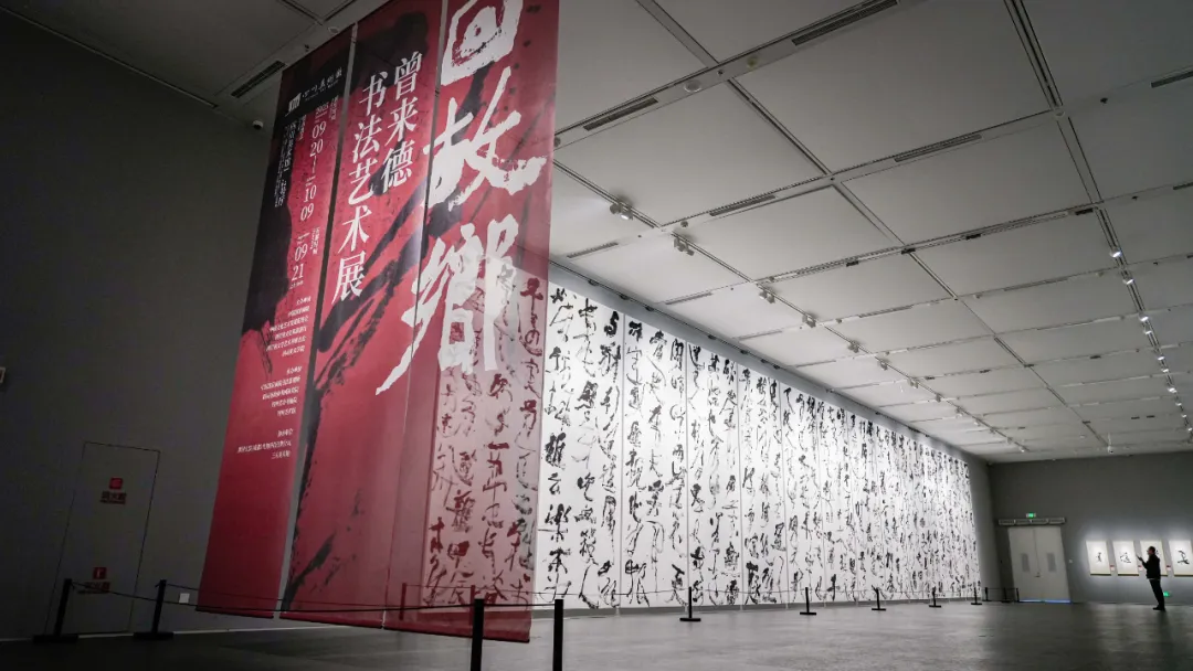 9月21日,由中国国家画院、中国文化艺术发展促进会、四川省文化和旅游厅、四川省文学艺术界联合会、四川美术学院联合主办,中国国家画院书法篆刻所、四川省政协书画研究院、四川省诗书画院、四川美术馆共同承办的“回故乡——曾来德书法艺术展”在四川美术馆开幕。本次展览精选曾来德先生近年创作的83件代表作,既有气势恢宏的巨幅作品,也有精巧雅致的尺牍小品,系统呈现了他扎根巴蜀文化土壤、持续突破创新的艺术探索。展览既是艺术家对家乡的深情献礼,也是传统书法艺术与现代美学理念的深度碰撞,更是四川文化艺术界的一件盛事